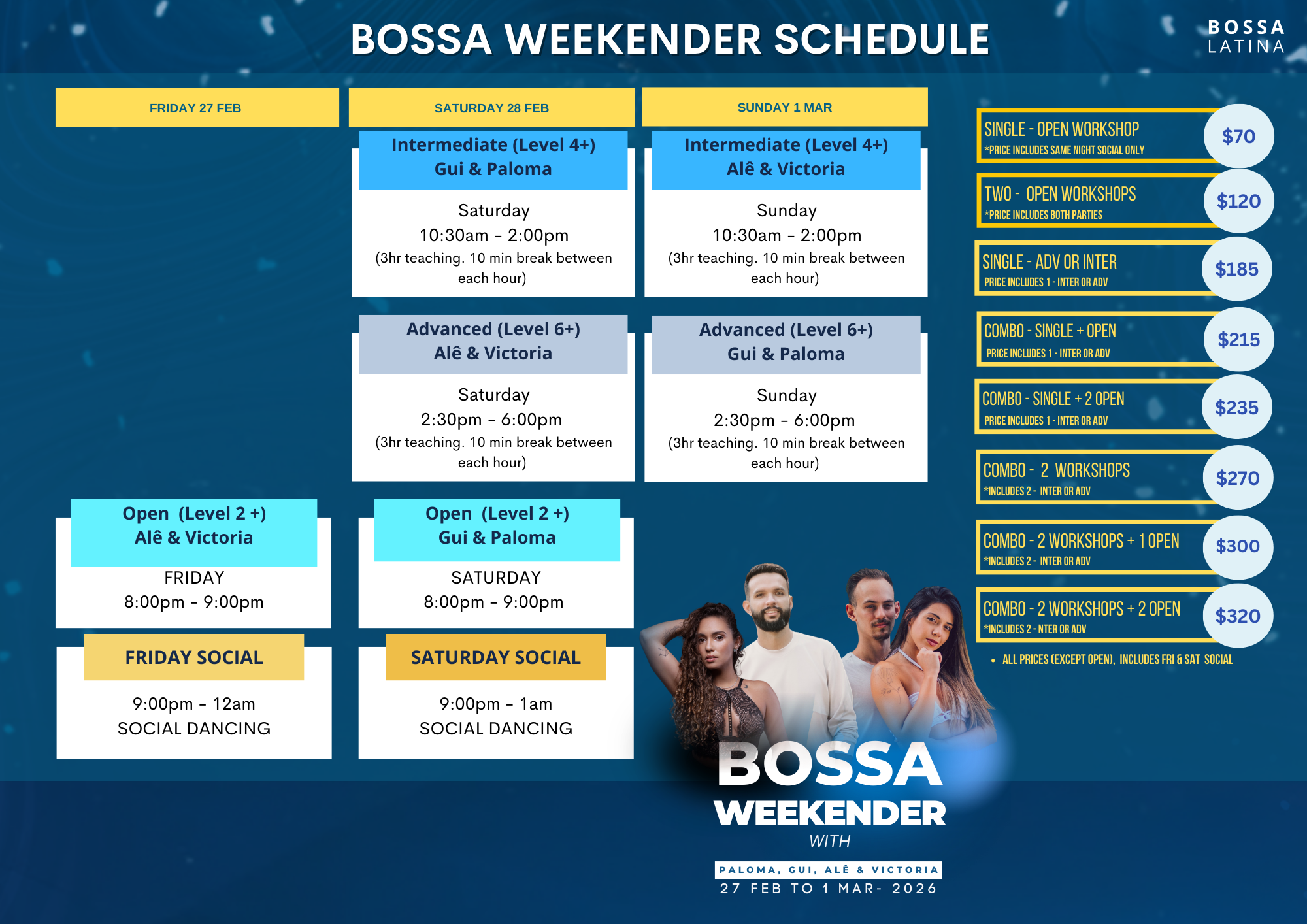 We are excited to announce we will be bringing Paloma & Gui to join us on the 26 Feb - 1 March 2026 for a Weekender. This weekend will feature 2 Nights of Parties & 4 Days of Workshop!!